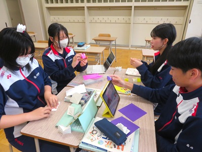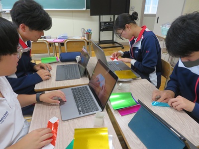 BYOD端末を活用し、折り方を動画で確認しながら一生懸命作業をしていました。
