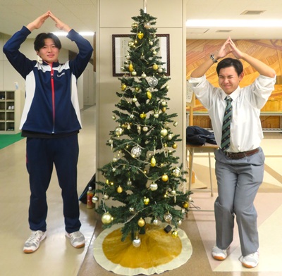 文化委員会で、生徒ホールにクリスマスツリーを飾りました。